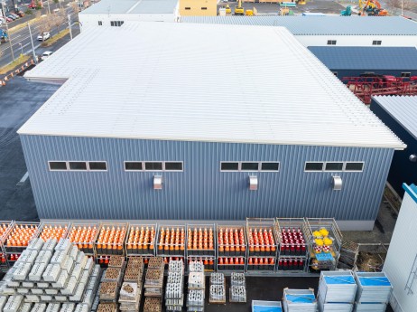 2025.12.08 BUILD CITY オフィス・集合住宅・住宅・商業施設 株式会社KMネクスト様 倉庫兼事務所新築工事 構造種別 :鉄骨造 階数 :2階建て 建築面積 :1,291.50㎡ 最高高さ :9,285m
